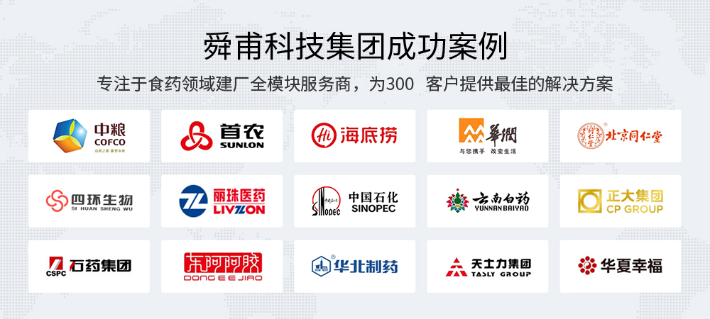 北京舜甫科技集團具有食藥領域20余年的建廠經驗,打造EPC總承包全流程的服務體系,滿足需求方從配方研發,工藝包設計、工程設計、工程交付、運營托管、培訓售后、建廠投產各模塊業務的交鑰匙工程。